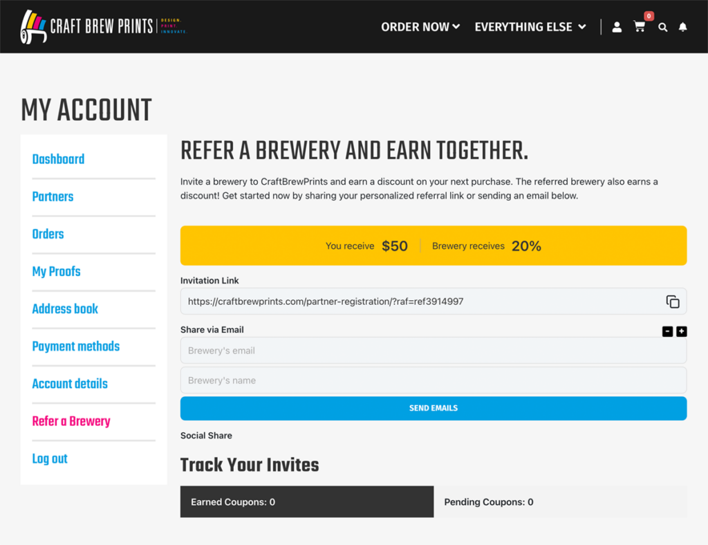 Know a brewery that could benefit from working with us? Send them your link and help them save 20% on their first order — while you earn rewards for spreading the word. Head over to your dashboard and check out the Refer a Brewery page to get started.